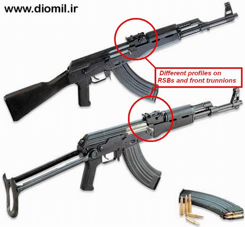 Apparently there are several designs produced in Iran, that goes beyond those two in the Diomil pic [different receiver covers, different types of furniture, different rear sight bases, different 'ears' on the front trunnions and most likely also other features].